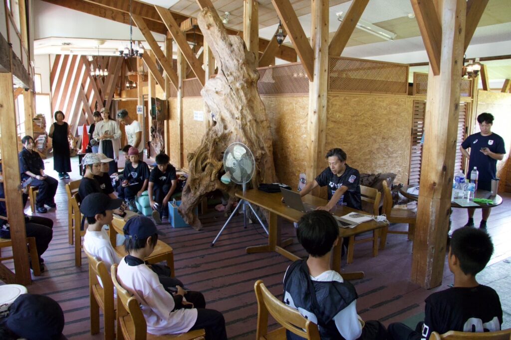 開会式の後、今井勇人コーチによる目的と目標をテーマにした座学がありました。目標の立て方や、オリンピックへの道のり作りの方法を学びました。