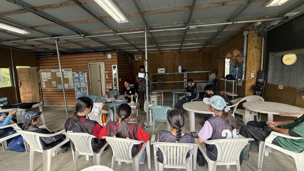 教室の開始に先立ち、SSBAトップチームのコーチも務める上原拓也コーチによる「目標と目的」に関する座学が行われました。