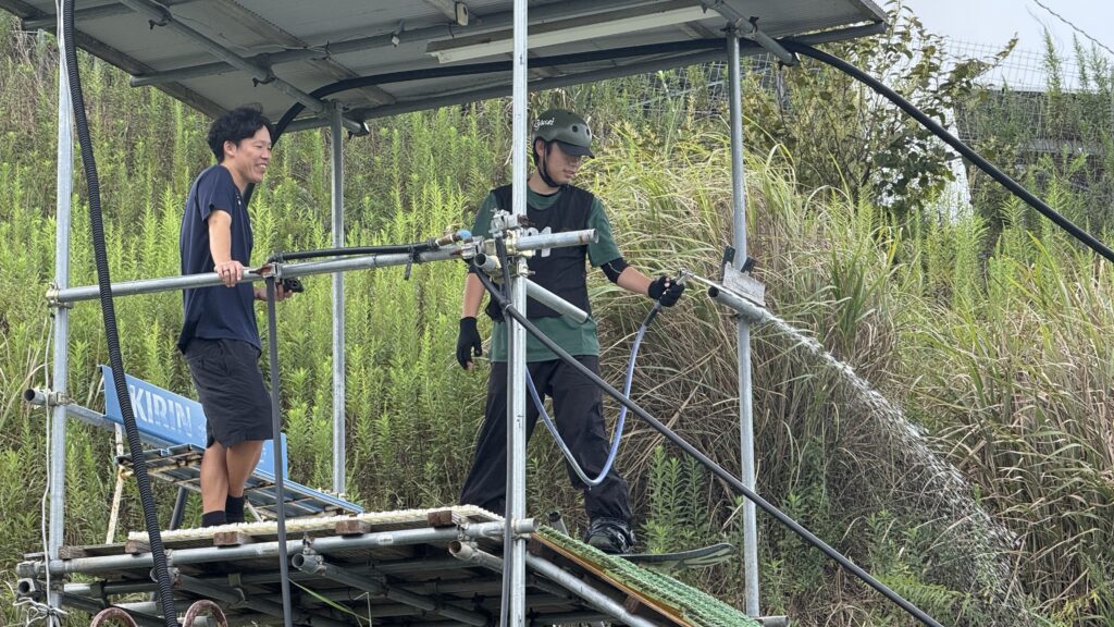 福岡KINGSには大小3種類のジャンプ台が設置されており、それぞれに担当コーチが付き、実技指導が行われました。
